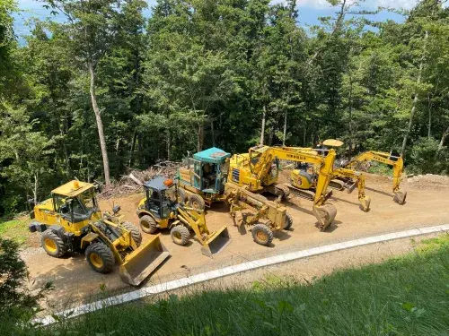 バックホウ6台,タイヤショベル3台,モーターグレーダー1台,ブルドーザー1台,3tダンプ1台,2tダンプ1台の重機を保有しています。