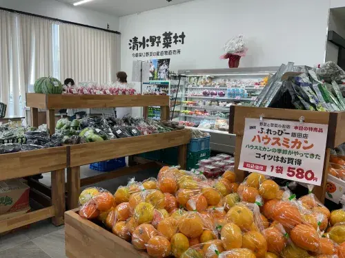食の安全・安心・新鮮・美味しさを届けるために、「店舗事業」での農畜産物の取り扱いは「国産」にこだわり商品提供をしております。店舗には、地元の生産者組織である「清水野菜村」による採れたての新鮮野菜や、県外JAからの産地食送品や市場仕入れ商品、港で水揚げされたばかりの魚介類が並びます。