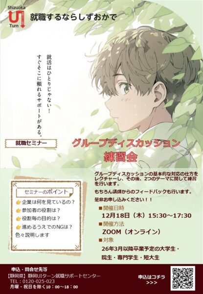 静岡UIターン就職サポートセンターでは、就職試験を控えている方向けに、グループディスカッション練習会を開催します。